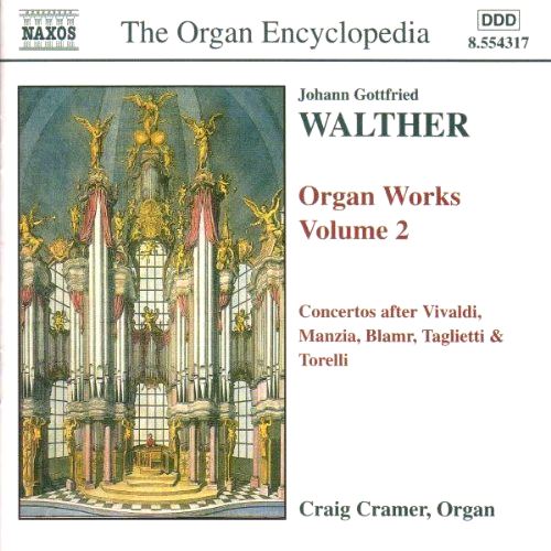 Craig Cramer Concerto del Signor Torelli appropriato all'Organo, A minor - I. Allegro - 2:36 Johann Gottfried Walther Johann Gottfried Walther Organ Works Vol 2 - Naxos 8.554317 1997 |